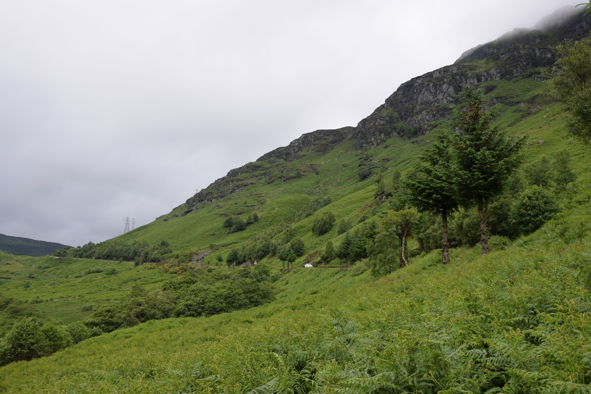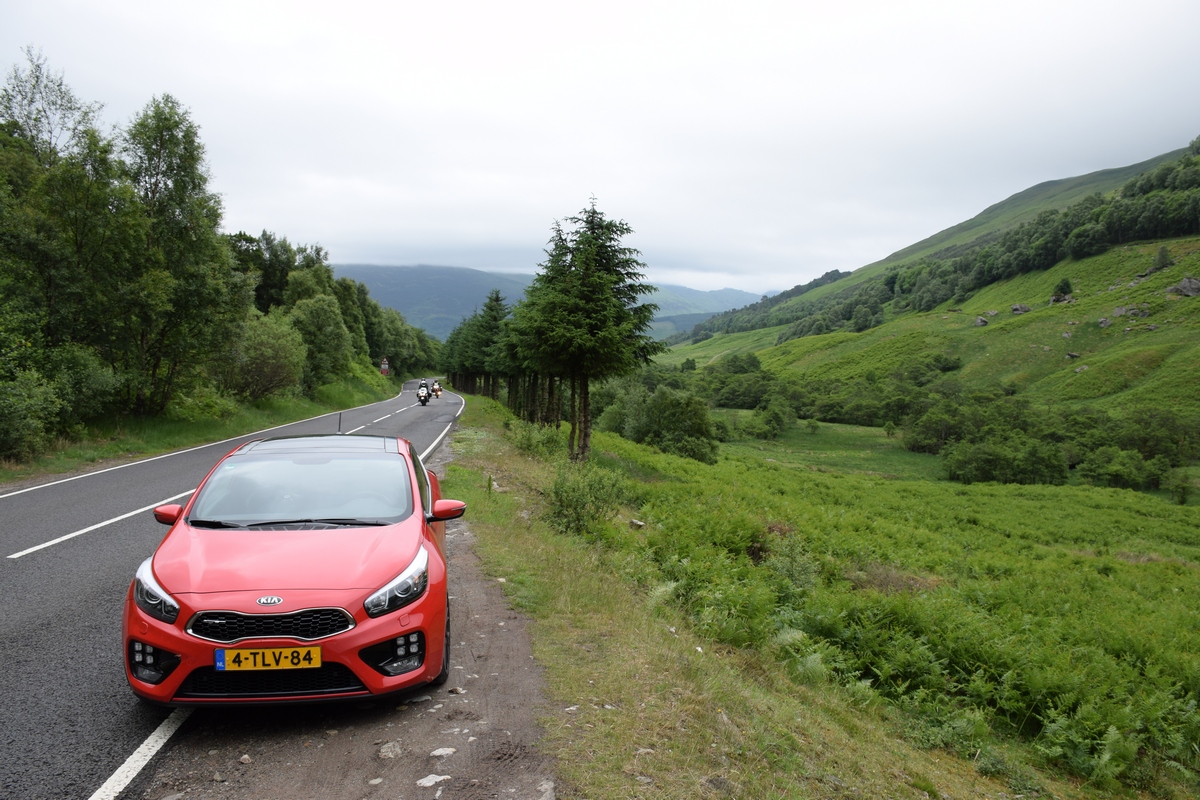 We gaan vandaag langs veel meren rijden. Het is hier overal mooi groen en rustig. Het is echt genieten. Mels verteld dat hij tijdens het uitzetten van de routes vak op streetview heeft gekeken hoe de wegen hier zijn. Hij kent ook plekken terug die hij toen heeft gezien. We komen langs Loch Earn. Hier zijn zelfs kampeer zones langs de meren. Mag je je tentje opzetten of camper neerzetten en er kamperen.