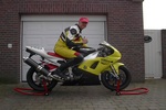 Mels ging dus zoeken op internet voor een motor, na veel zoeken is hij uit gekomen bij een Yamaha YZF R1 uit 1999 met slechts 12.500 Km op de teller. Later bleek dat het geen 1999 model was maar een 2000 model met de kuipdelen van een 1999. Origineel zou de motor blauw geweest zijn. Aan meer details is Mels niet gekomen. Eenmaal in zijn bezit is Mels gaan zoeken naar beschadigde onderdelen, want een speciale race kuip zou duurder zijn. Ook heeft Mels speciaal voor het circuit rijden een motortrailer gekocht. Nadat alle beschadigde kuipdelen ontdaan waren van stickers, vet en olie heeft Mels alles in een mooi kleurtje gespoten t.w. geel, zwart, rood en wit. Waarom juist die kleuren ?? Mels heeft natuurlijk ook een ander motorpak gekocht in dezelfde kleuren. Op de race pagina staan wat foto’s en een verslag van de eerste circuit dag op Zolder.