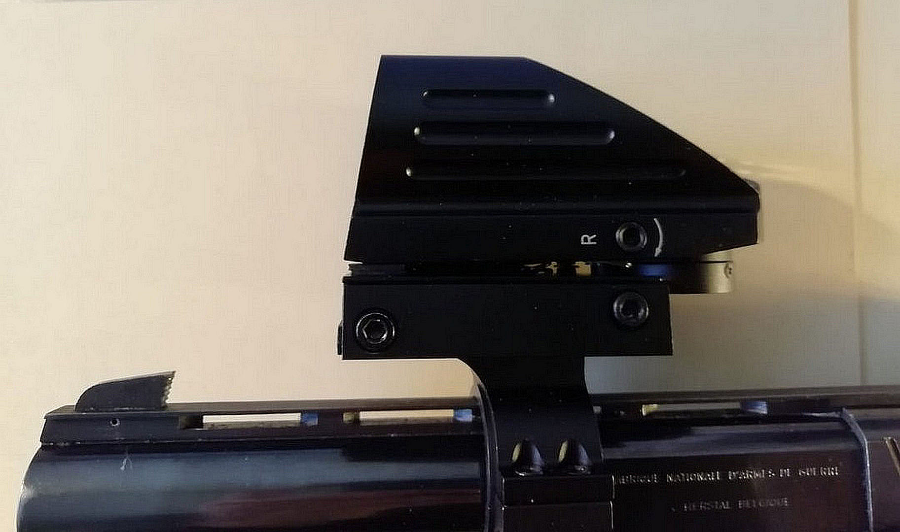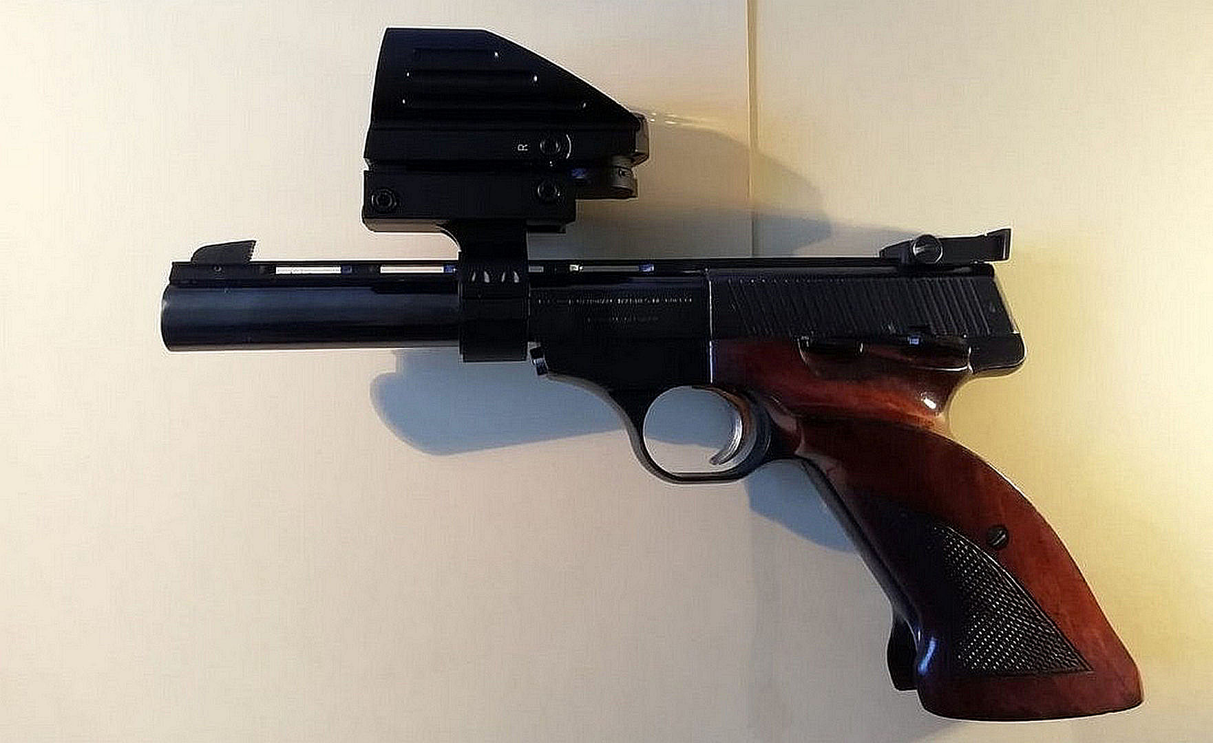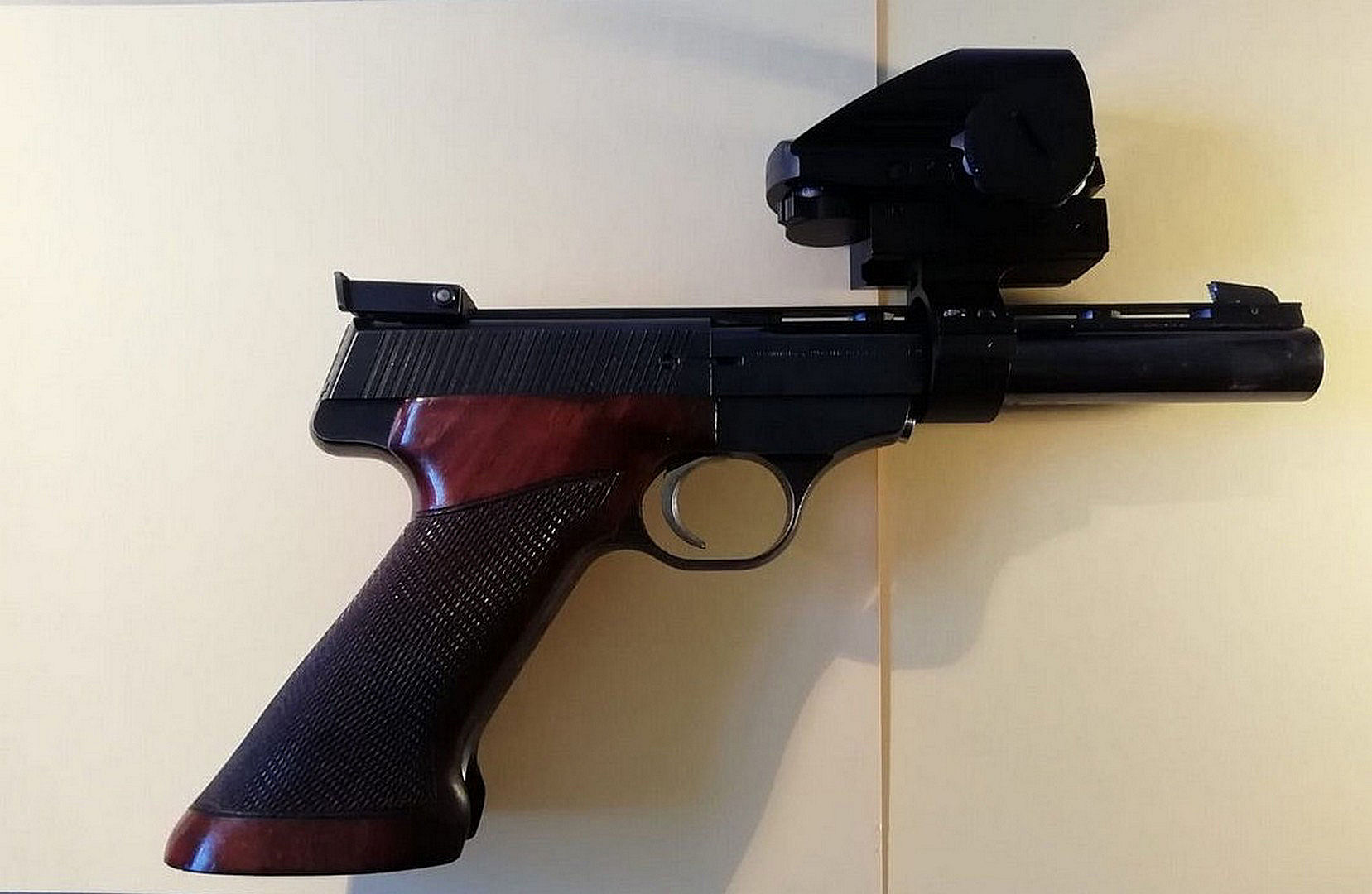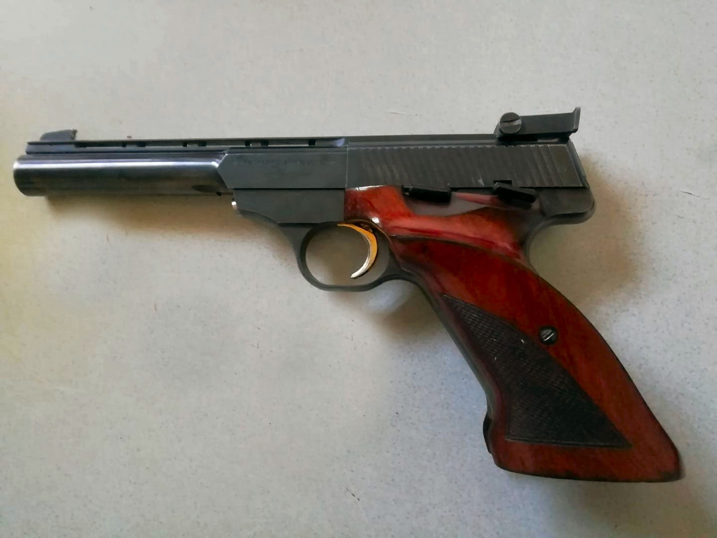 Mels heeft zijn 1ste wapenverlof opgehaald bij het Politie bureau in Sittard. Hij heeft daarna direct zijn eigen wapen opgehaald bij IDC Baexem. Een Browning Buck Mark Rosewood .22LR (1987). Een van de oude ELKKS vereniging wapens.
